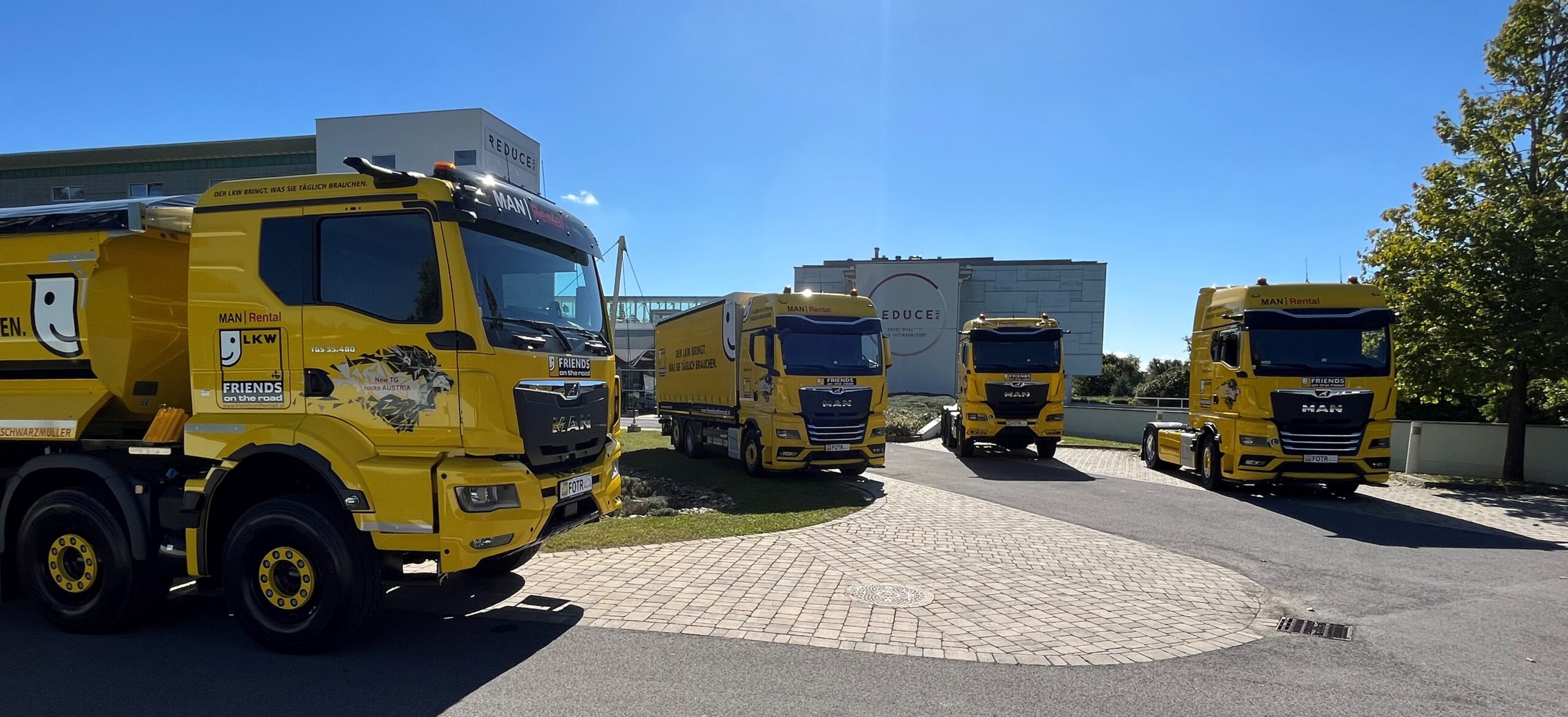 Am 20.09.2023 war es soweit. Bei strahlendem Sonnenschein in Bad Tatzmannsdorf wurden die vier neuen MAN Friends on the Road Fahrzeuge den Geschäftsführern, Obmännern und Funktionären der WKO Österreich, Sparte Transport, feierlich präsentiert.
