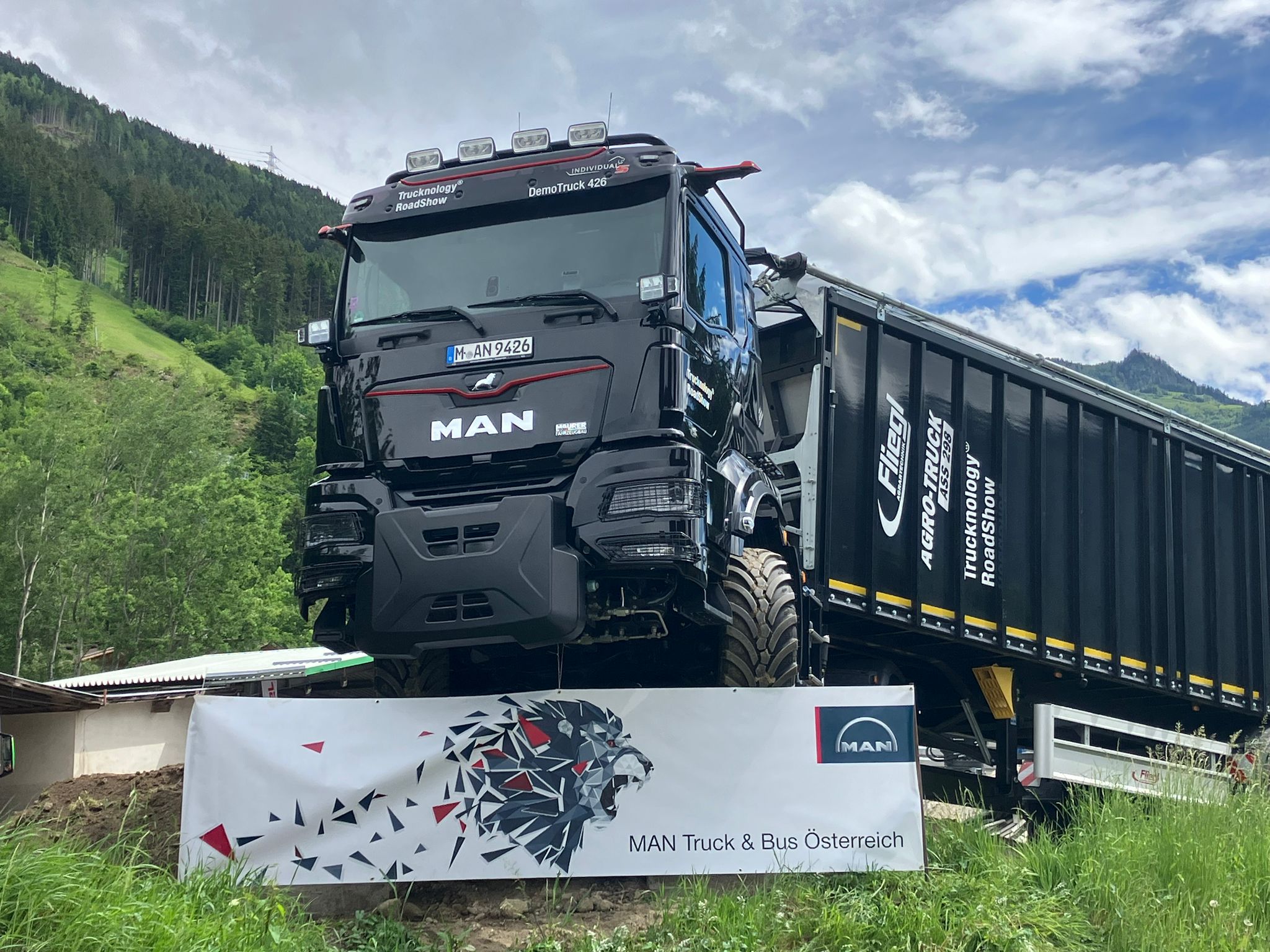 Auch MAN und der Commander Club waren vor Ort und beteiligten sich an der größten Bau-Veranstaltung der Region. Die zahlreichen Ausstellungs- und Kundenfahrzeuge mit verschiedenen Aufbauten waren ein echter Blickfang. Wer sich einmal selbst hinters Steuer setzen wollte, konnte unter Aufsicht des MAN ProfiDrive Teams die Löwen auf der Teststrecke testen. Abgerundet wurde der Auftritt mit einem Veranstaltungscontainer inklusive Commander Club Gewinnspiel.