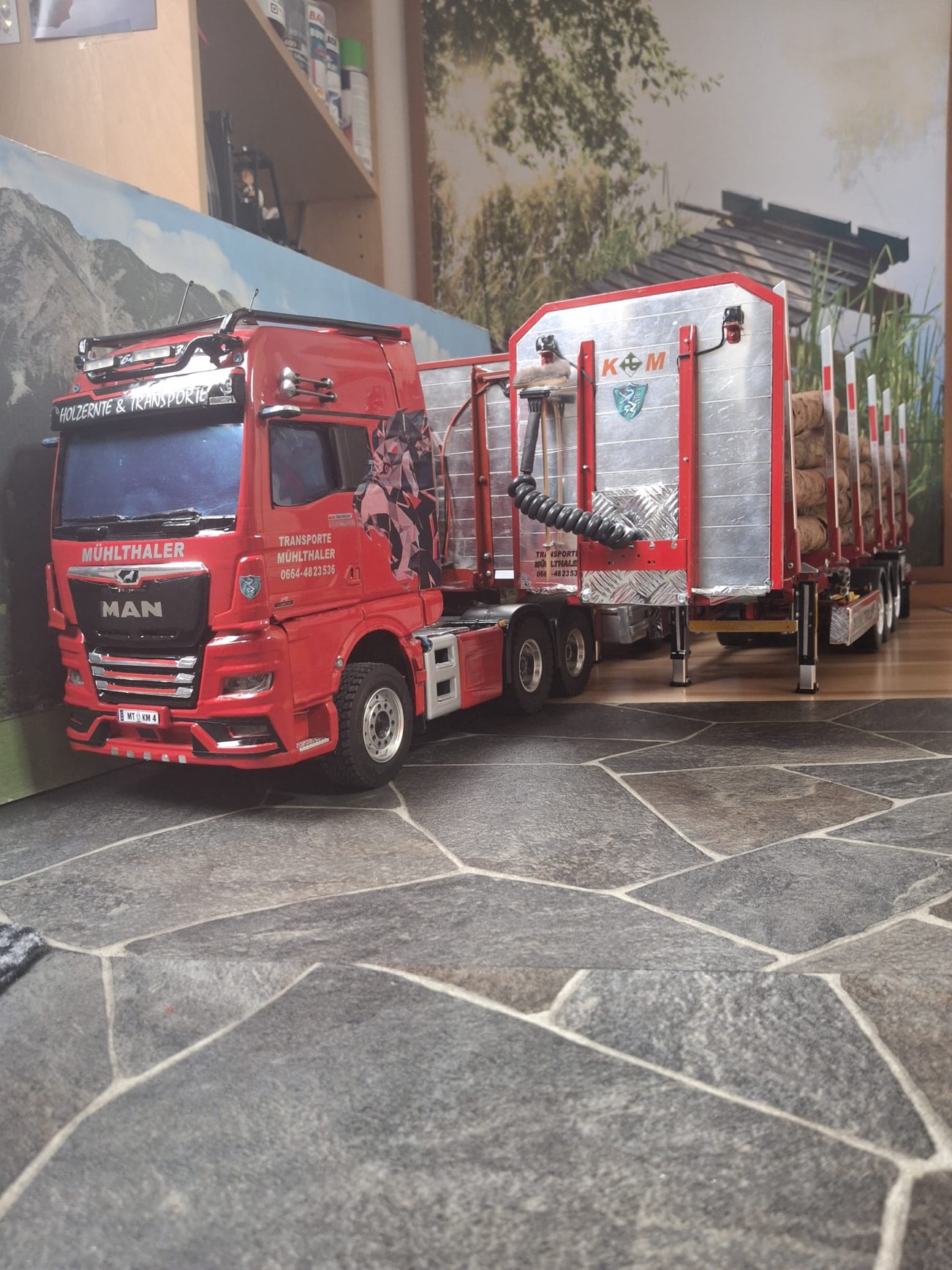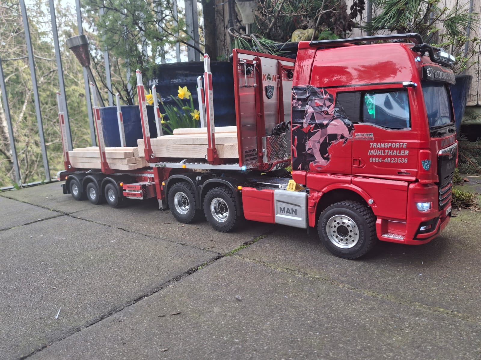 Commander Mühlthaler hat mit viel Hingabe und technischem Know-how erneut ein beeindruckendes Modell realisiert: eine dreiachsige MAN Sattelzugmaschine mit Hochdach der neuesten Generation.