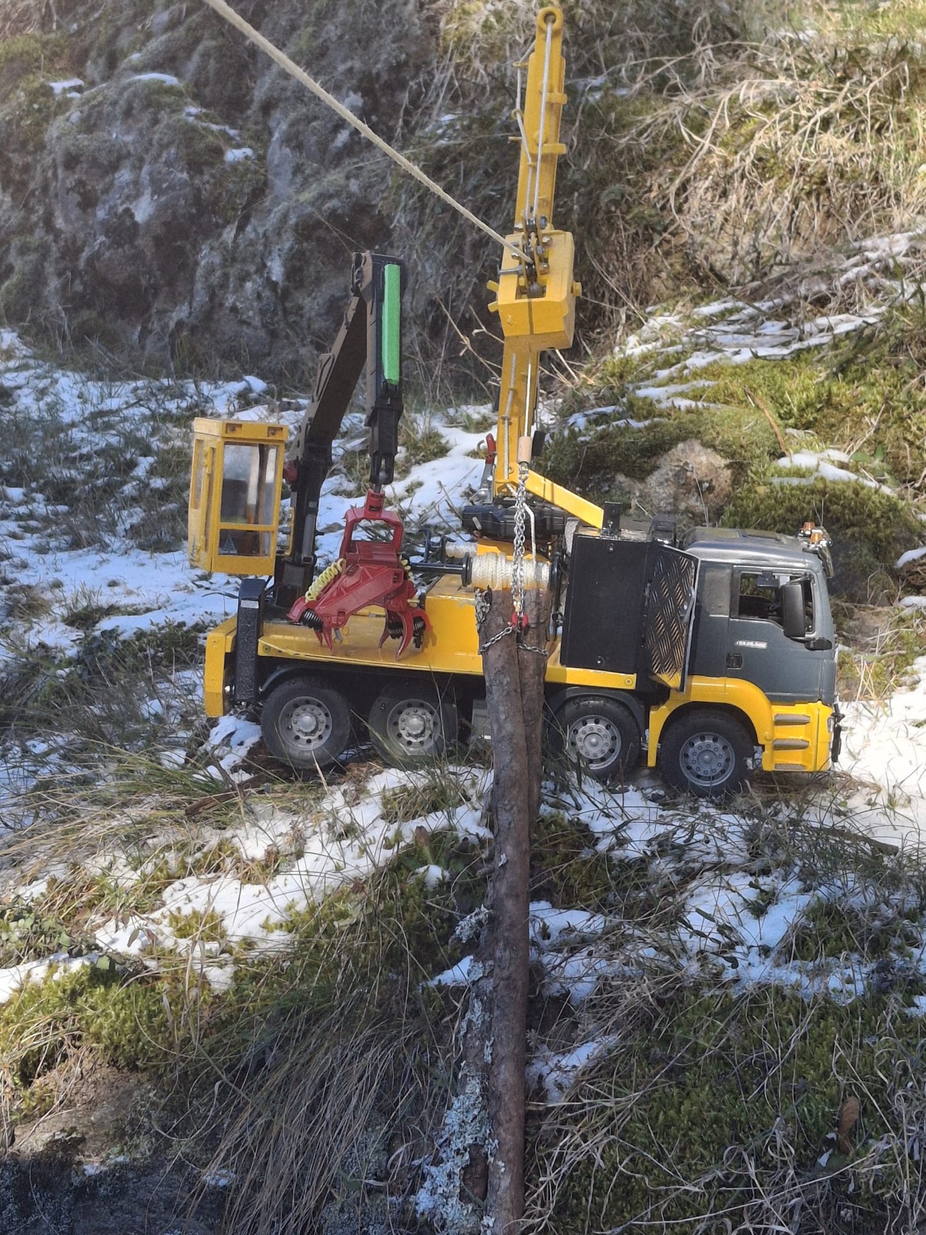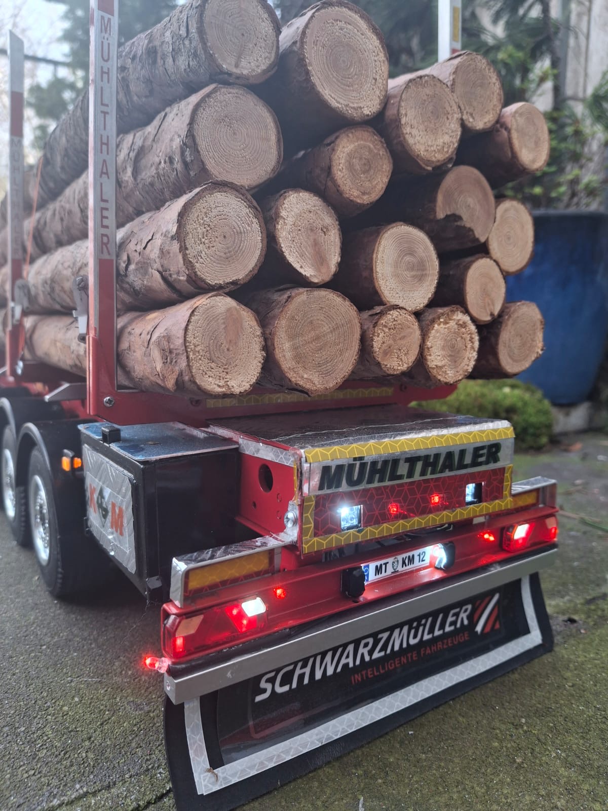 Die Sattelzugmaschine verfügt über drei Achsen und ein Hochdach. Zudem besitzt das Modell zwei Rungenauflieger, die speziell für den Holztransport ausgelegt sind. Der Antrieb erfolgt über einen vollständigen Allradantrieb, wobei alle Achsen sowohl angetrieben als auch sperrbar sind. Eine besondere technische Raffinesse stellt der Begrenzungs-LED-Faden dar, der dem Original-TGX nahezu identisch nachempfunden ist.