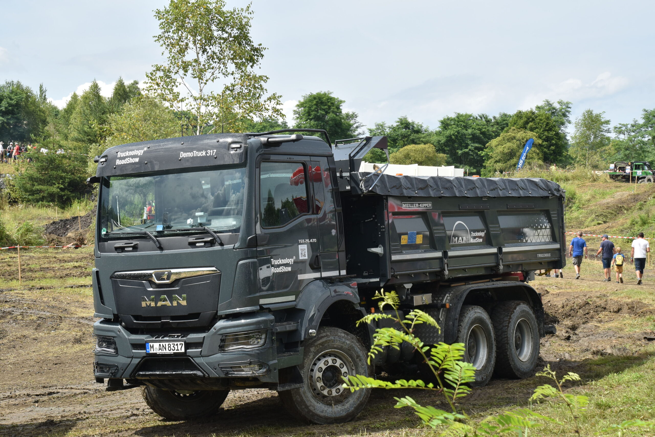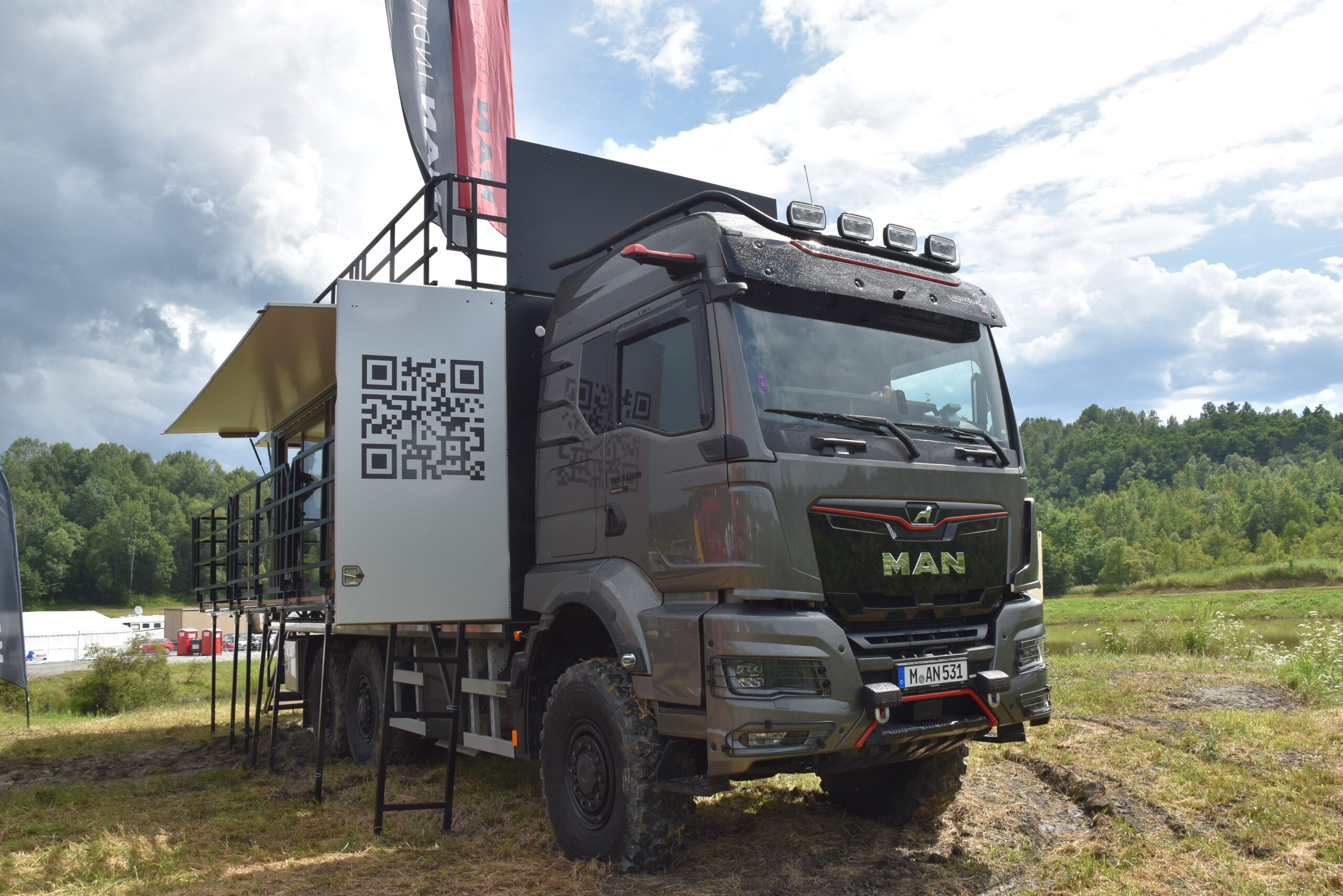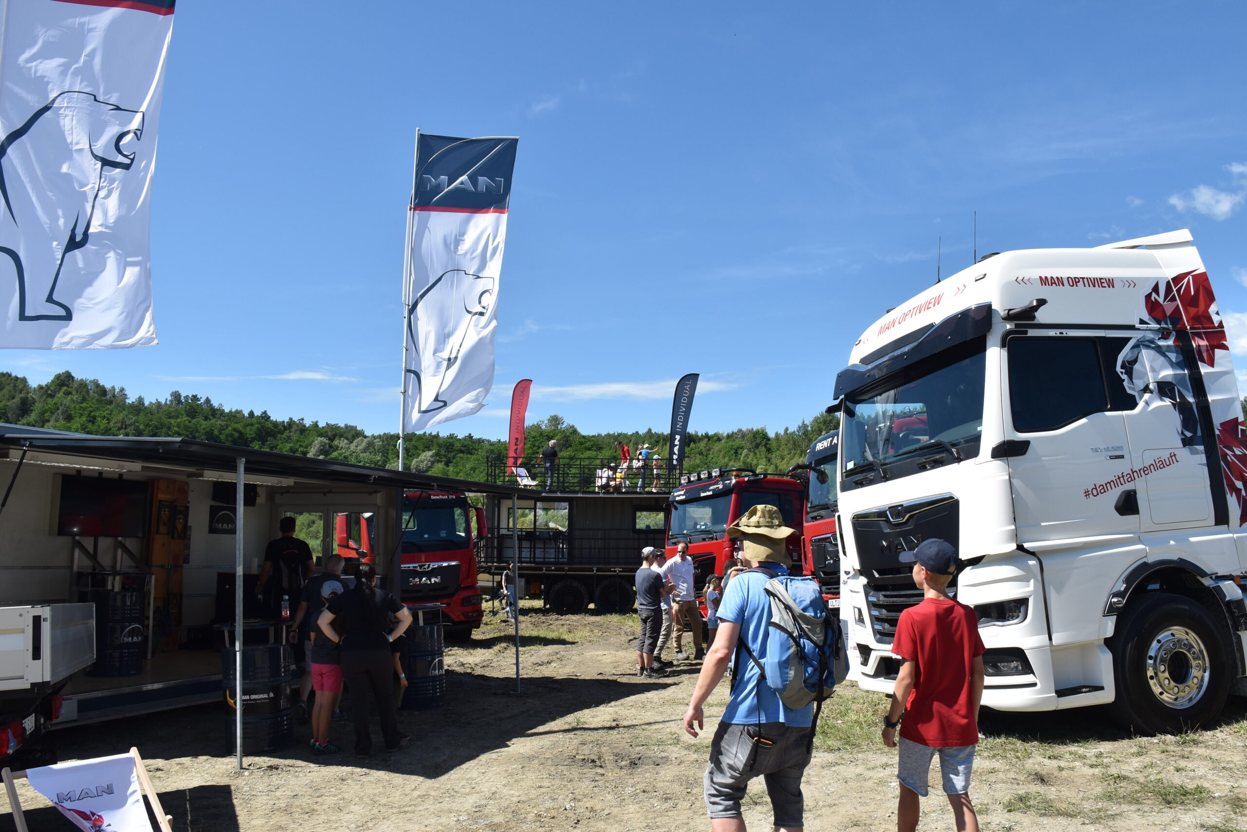 MAN war mit einer Fahrzeugausstellung mit Fokus auf Traktion vor Ort vertreten und bot für Interessenten Testfahrten gemeinsam mit MAN ProfiDrive im Gelände an. Neben einem Dreiachs- und Vierachskipper aus der Testflotte, war auch ein Vorführfahrzeug des Umbaupartners „Hendrickson“ verfügbar. Wer über keinen entsprechenden Führerschein verfügte, konnte am Beifahrersitz Platz nehmen – das Angebot wurde insbesondere von den jüngsten Gästen mit großer Begeisterung angenommen. Ein weiteres Highlight war der MAN Individual Showtruck, der auf seiner Dachterrasse einen perfekten Ausblick auf die Kurse ermöglichte und daher laufend von Gästen aufgesucht wurde. Der MAN-Stand wurde von zahlreichen Gästen besucht, unter denen sich auch einige Mitglieder des Commander Clubs befanden.